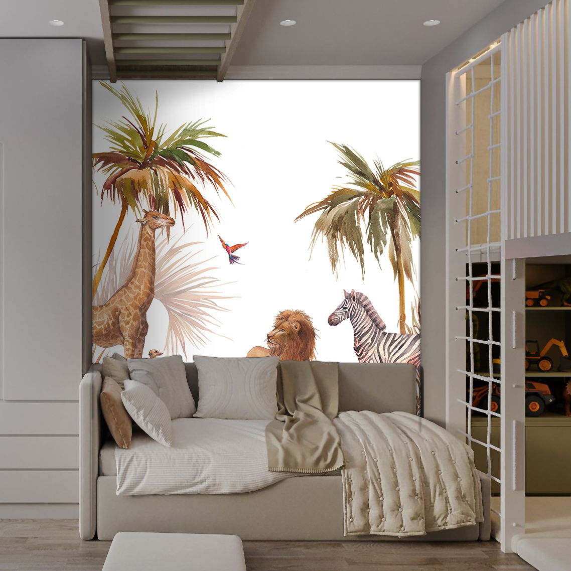 Transform your child’s room into an exciting safari adventure with our Safari vinyl wallpaper. Crafted from premium quality materials, these wallpapers not only decorate but also stimulate imagination and learning. Featuring realistic prints of safari animals and landscapes, they enhance the ambiance with vibrant colors and high print clarity. Easy to install and washable, our wallpapers ensure durability and safety, making them ideal for children’s spaces. Choose from a variety of designs to spark your child’s curiosity and create a fun, educational environment.