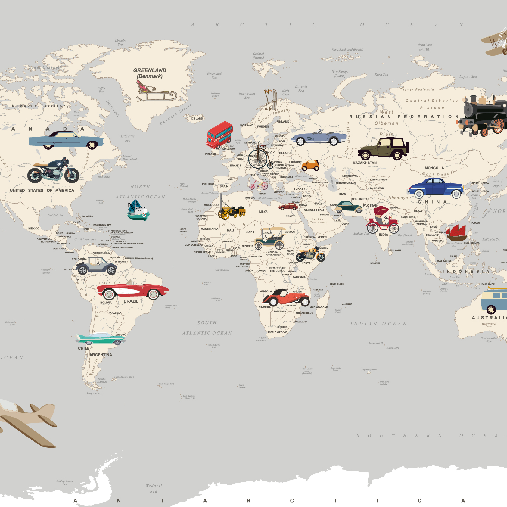 Jolly Wall offers premium vinyl photo wallpaper showcasing a vibrant map with cars, designed to enhance children’s rooms with both style and educational benefits. These wallpapers are washable, easy to install, and made from environmentally friendly materials, ensuring a safe and enjoyable space for children to learn and play.