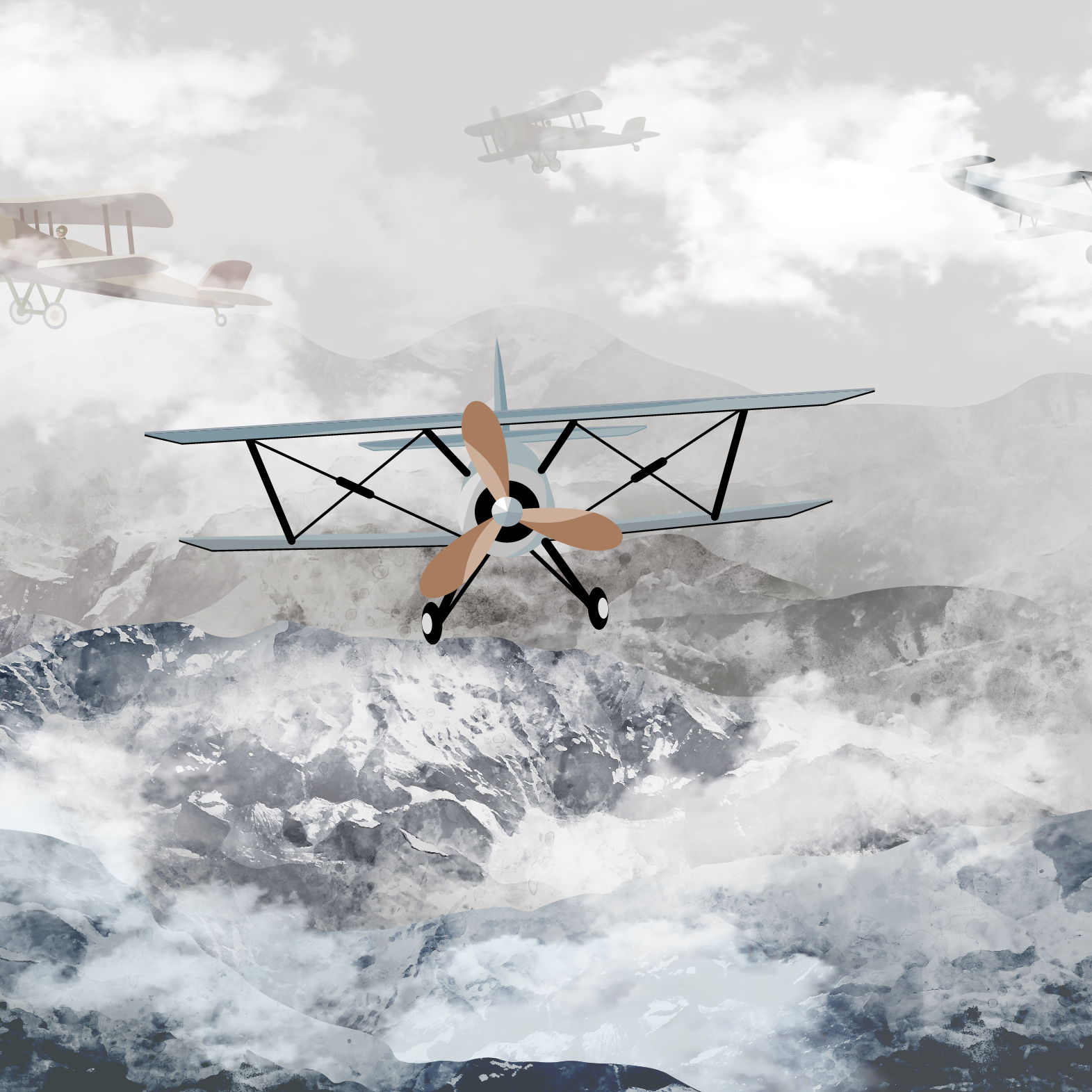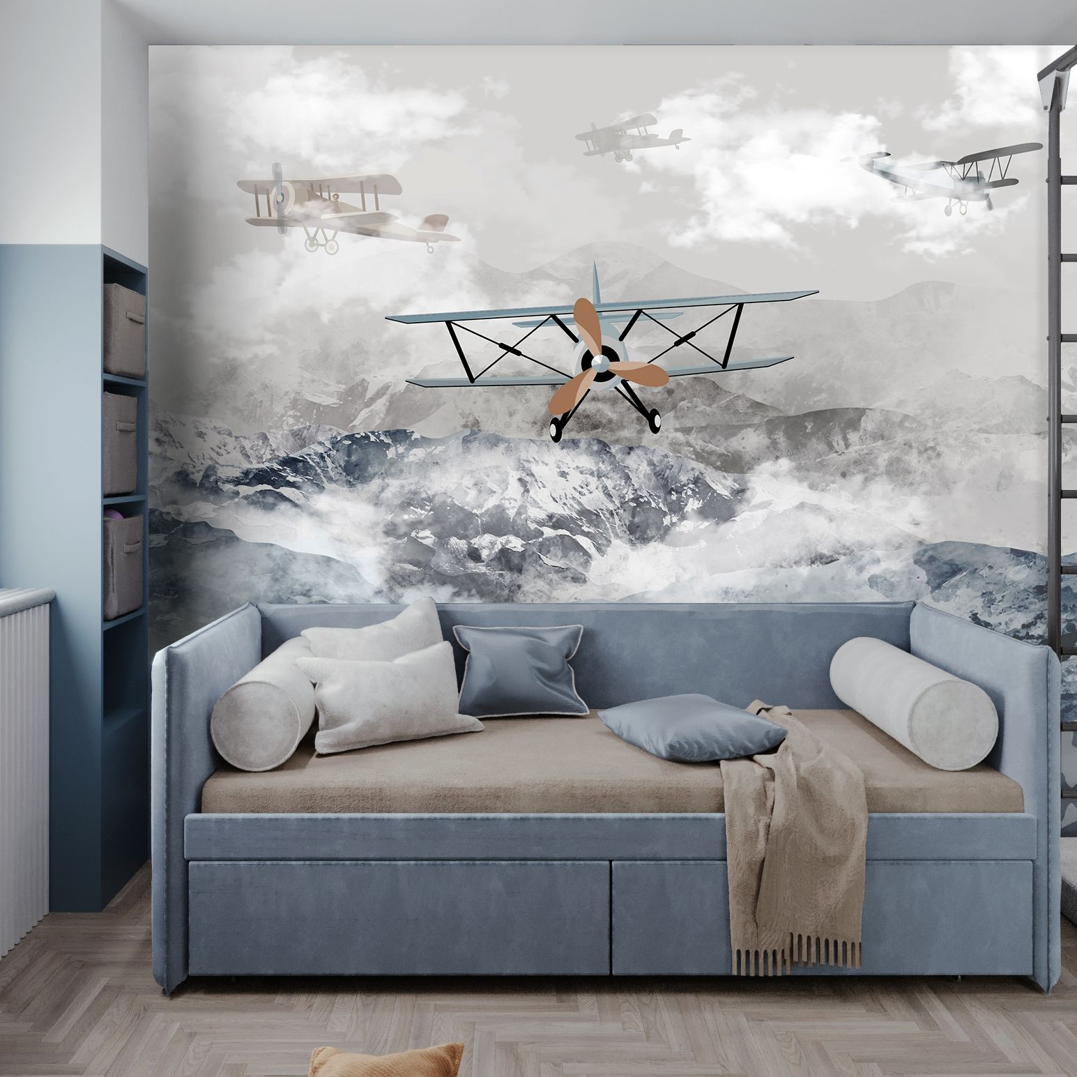 Create an adventurous atmosphere in your child’s room with our planes over misty mountains wallpaper from Jolly Wall. Crafted from premium vinyl on non-woven fabric, these wallpapers combine vivid colors with realistic imagery to spark imagination and learning. They are easy to install, washable, and environmentally friendly, ensuring a safe space for children. Choose from a variety of designs to inspire exploration and create a cozy, inspiring environment.