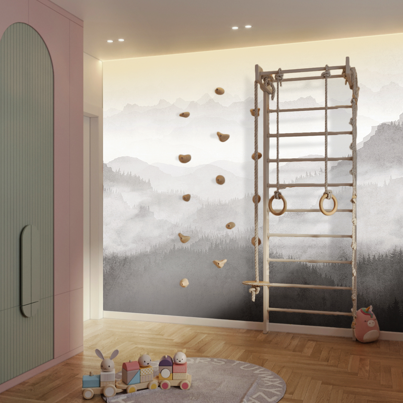 This is exactly the type of wallpaper we use in our projects — thanks to its quality, modern look, and ability to create a captivating and inspiring atmosphere. Made from eco-friendly materials, the wallpaper contains no harmful substances and is completely safe. It’s the perfect choice for children’s rooms, combining practicality with aesthetics to make the space comfortable, cozy, and exciting for little ones.