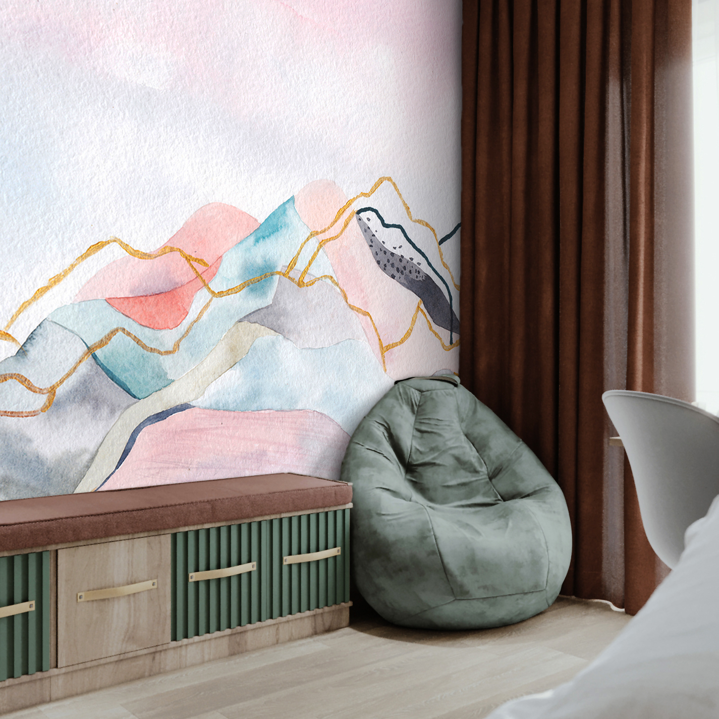 Transform your child’s room with Jolly Wall’s premium vinyl wallpaper showcasing pink mountains. Designed to inspire and stimulate development, our wallpapers are washable, easy to install, and crafted from safe, eco-friendly materials.
