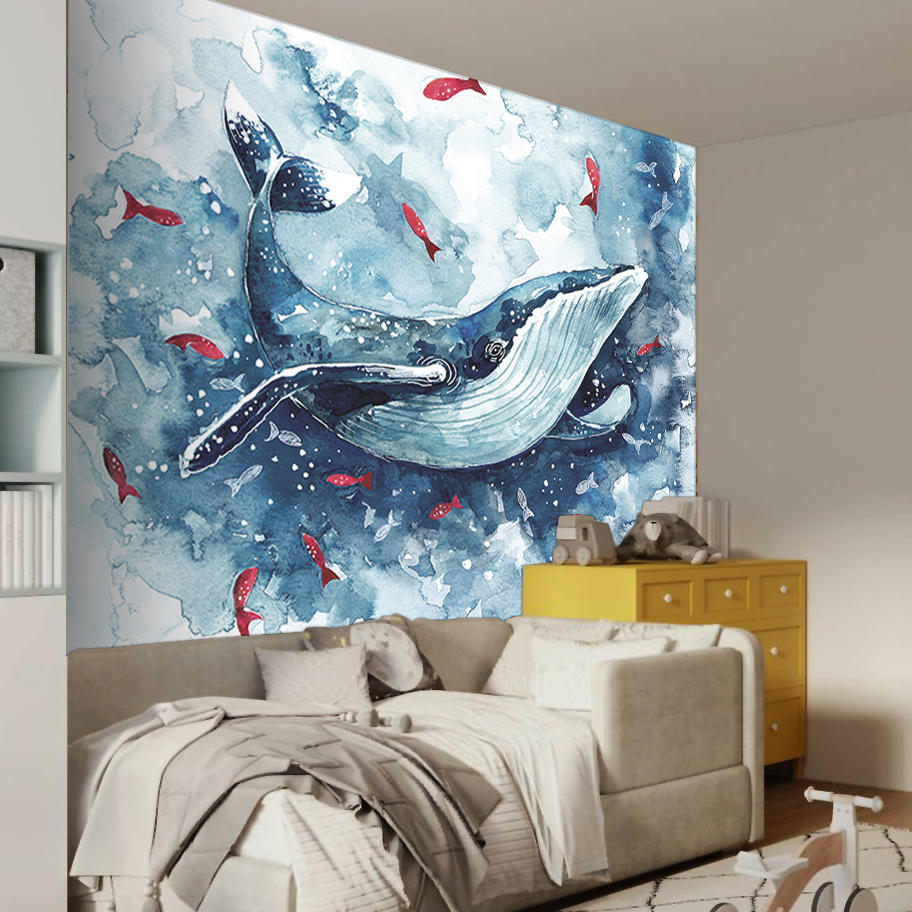 Dive into a magical world with Jolly Wall’s whale with red fish vinyl photo wallpaper. Ideal for children’s rooms, it combines artistic charm with educational value, enhancing the space with interactive designs and durable, easy-to-install materials.