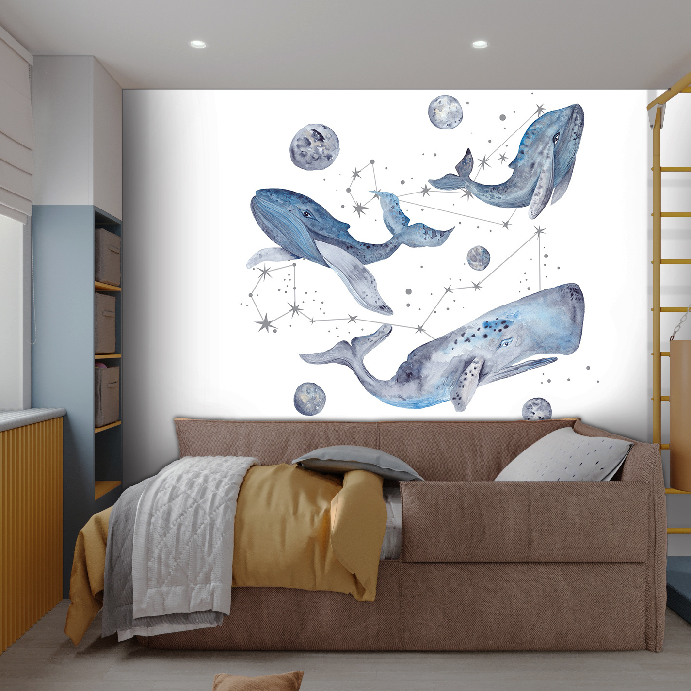 This is exactly the type of wallpaper we use in our projects — thanks to its quality, modern look, and ability to create a captivating and inspiring atmosphere. Made from eco-friendly materials, the wallpaper contains no harmful substances and is completely safe. It’s the perfect choice for children’s rooms, combining practicality with aesthetics to make the space comfortable, cozy, and exciting for little ones.