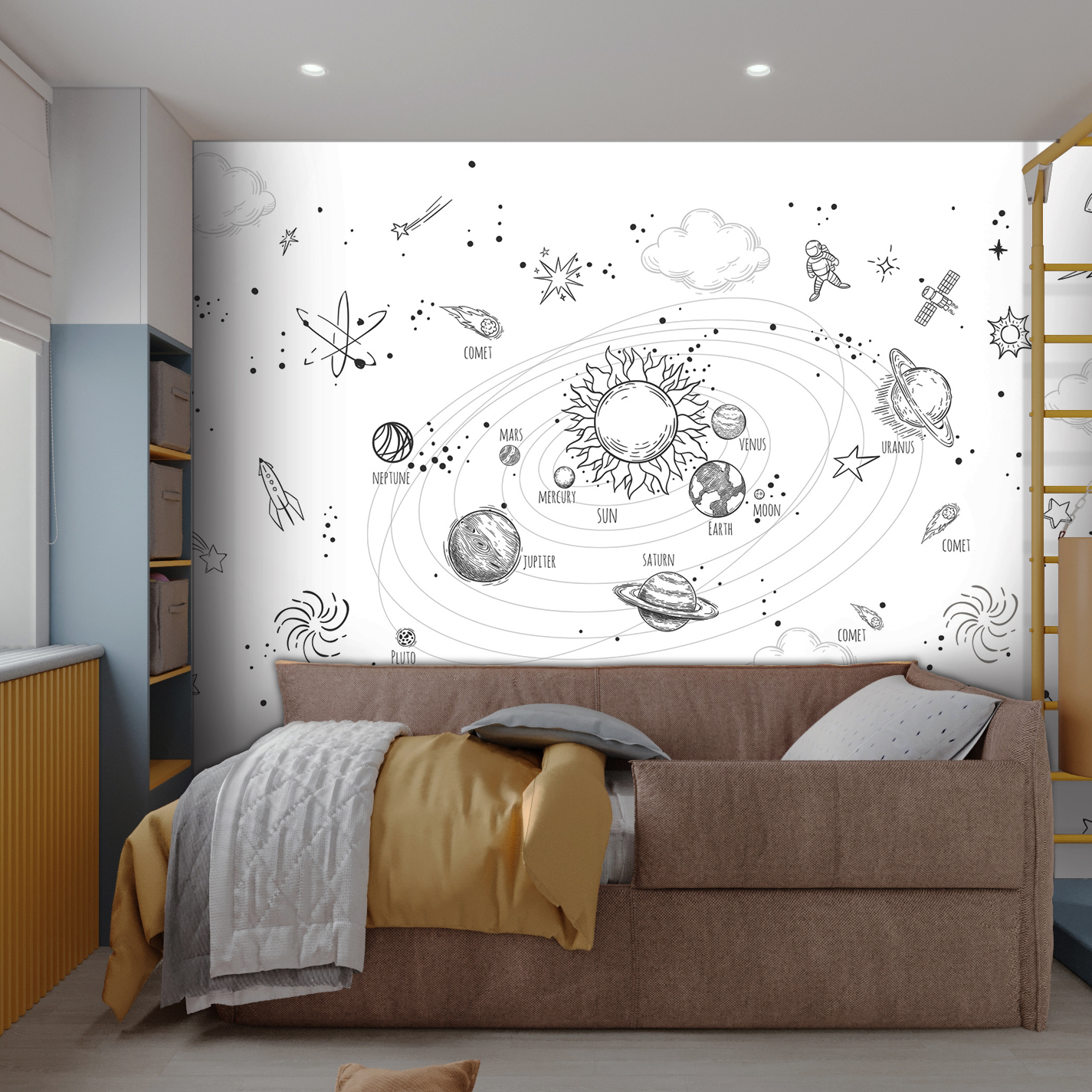 Explore our premium quality “Planet Map Black and White” wallpaper from Jolly Wall. Perfect for stylishly decorating children’s rooms while fostering learning and imagination.