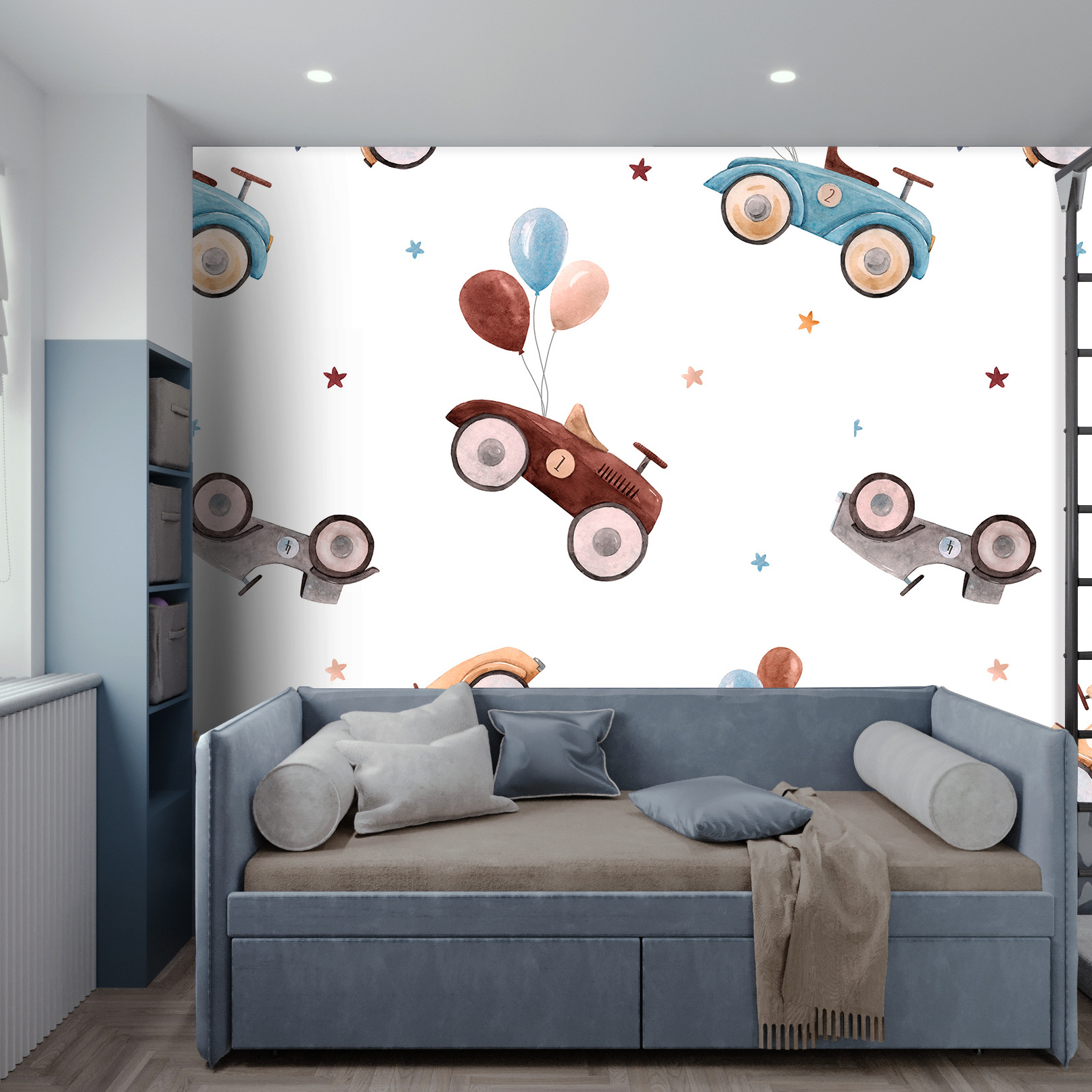 Transform your child’s room into a thrilling racetrack with our premium vinyl wallpaper featuring vibrant car racing scenes. Easy to install and washable, these wallpapers are not only stylish but also safe and environmentally friendly. Ideal for creating a cozy yet stimulating environment that encourages development and creativity.