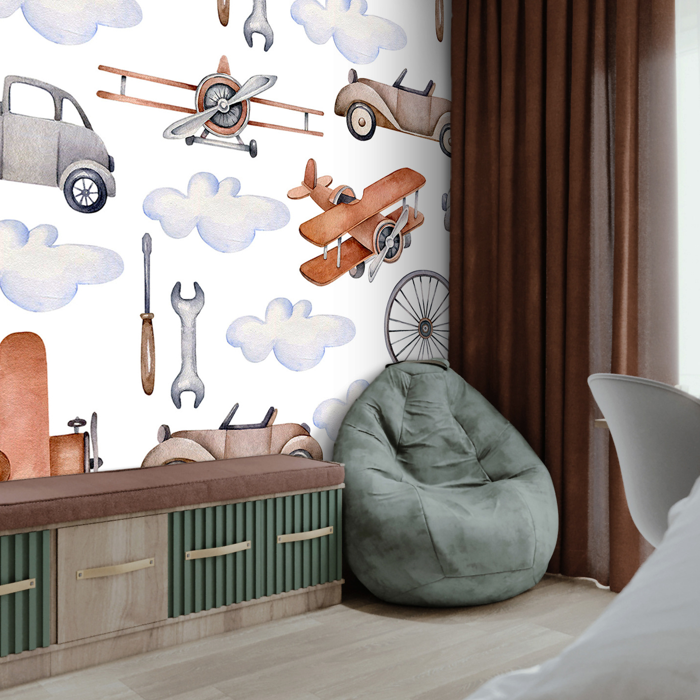 Bring vintage charm to your child’s space with our premium vinyl wallpaper featuring retro cars and planes. Easy to install and washable, these wallpapers are crafted from environmentally friendly materials, ensuring safety and durability. Stimulate imagination and create a cozy atmosphere with vivid colors and realistic designs.