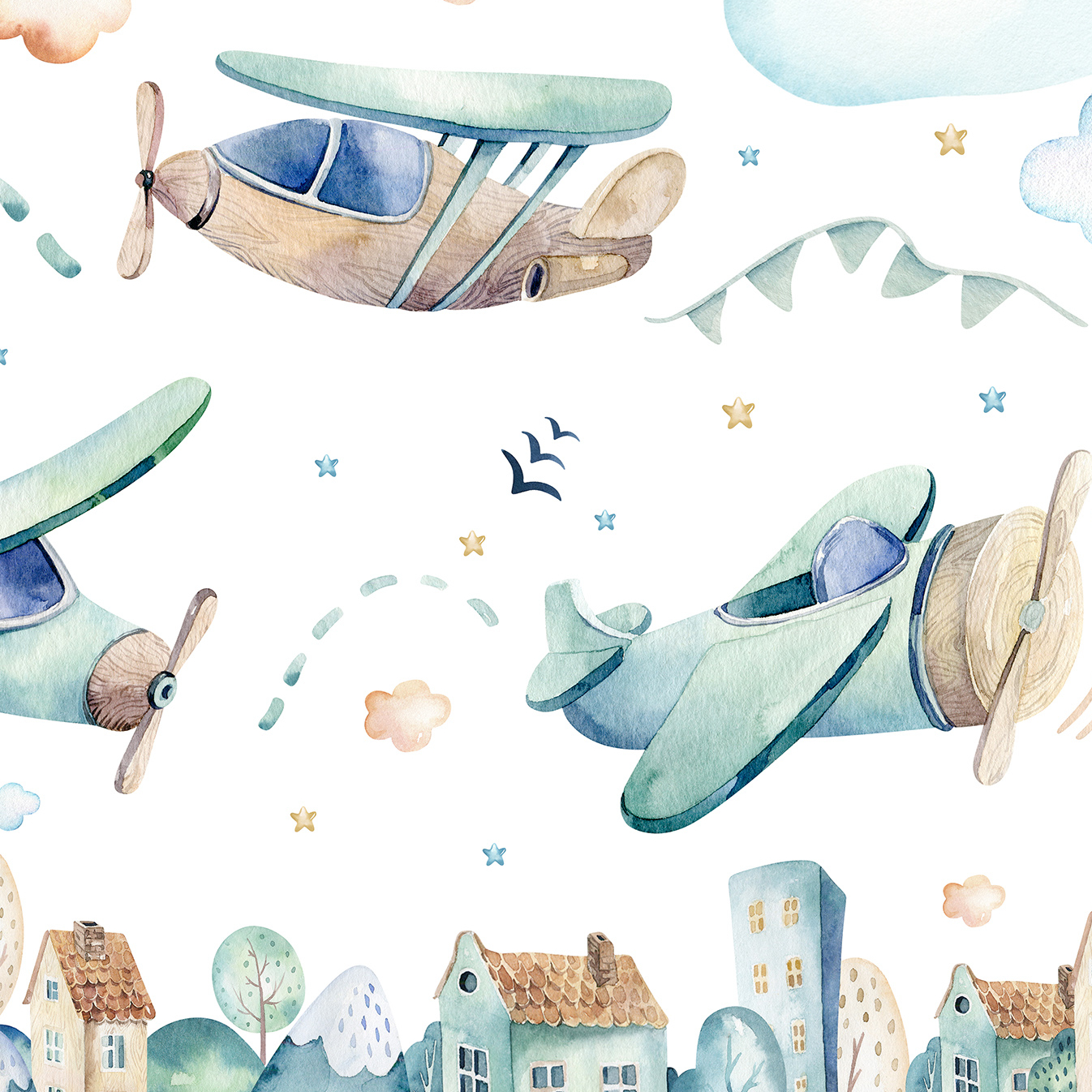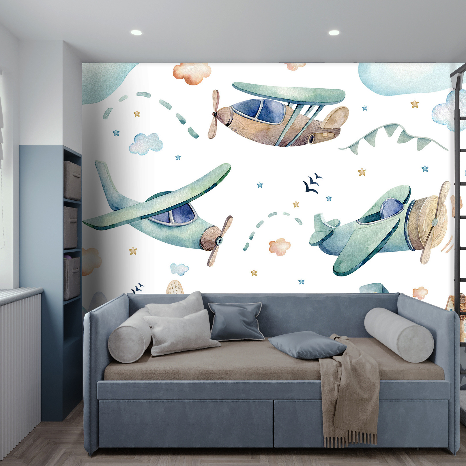 Elevate your child’s room decor with our premium vinyl wallpaper featuring planes soaring over houses. Easy to install and washable, these wallpapers are crafted from environmentally friendly materials, ensuring safety and durability. Stimulate imagination and create a cozy atmosphere with vibrant colors and realistic designs.