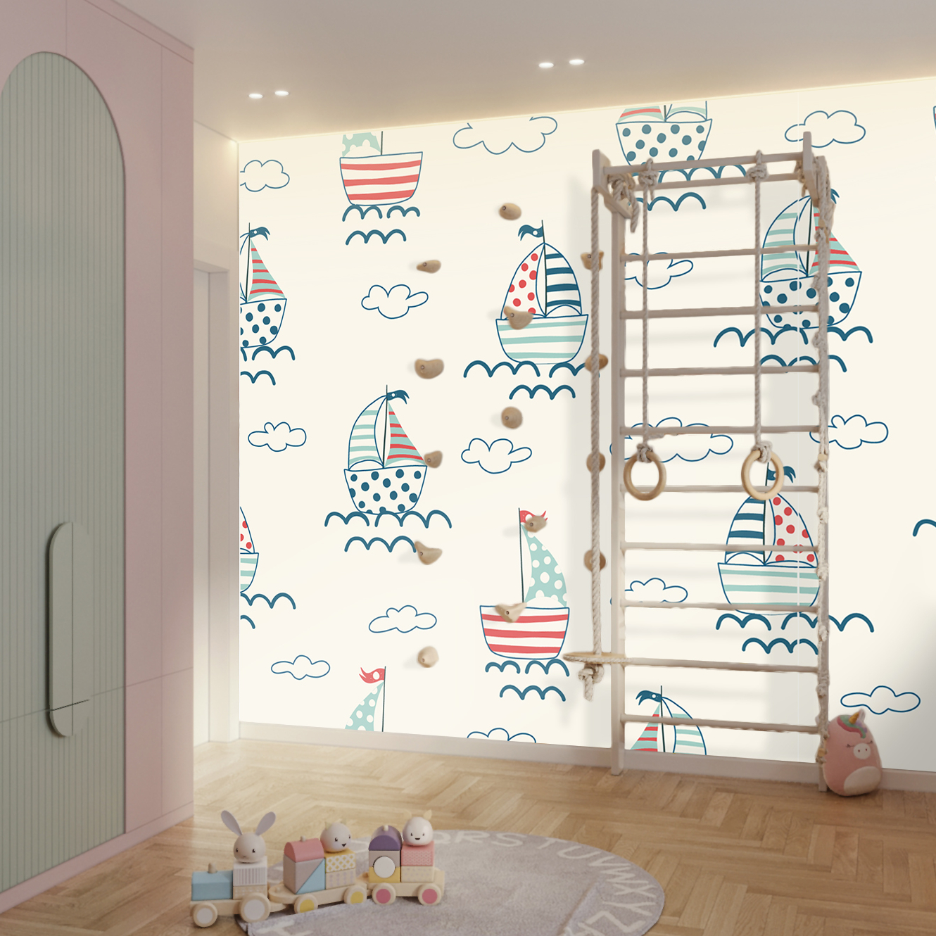 This is exactly the type of wallpaper we use in our projects — thanks to its quality, modern look, and ability to create a captivating and inspiring atmosphere. Made from eco-friendly materials, the wallpaper contains no harmful substances and is completely safe. It’s the perfect choice for children’s rooms, combining practicality with aesthetics to make the space comfortable, cozy, and exciting for little ones.