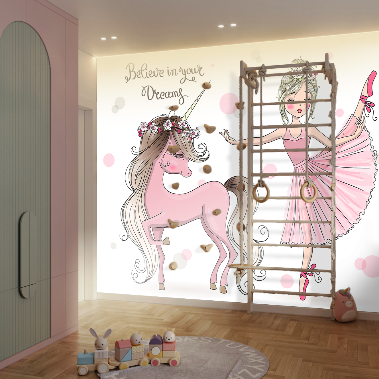 Transform your child’s room with our unicorn and ballerina vinyl photo wallpaper from Jolly Wall. Designed to stimulate imagination and development, these wallpapers feature high-quality prints, vibrant colors, and interactive elements. They are washable, easy to install, and crafted from safe, eco-friendly materials. Create a magical and inspiring space for your child with ease.